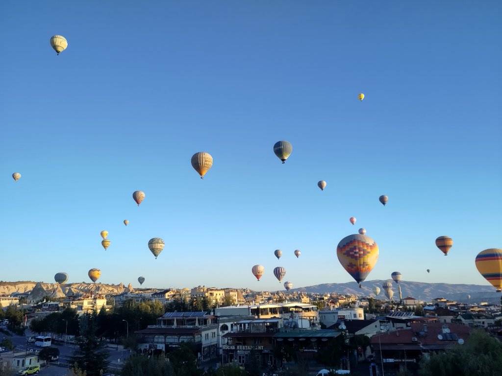 In Göreme die Heißluftballons schöööön. Extrem touri die Gegend, aber sowie man einen Spaziergang draußen macht, hat man ratz fatz seine Ruhe, und die gieneß ich sehr. Am Ende war ich dort vier Nächte.