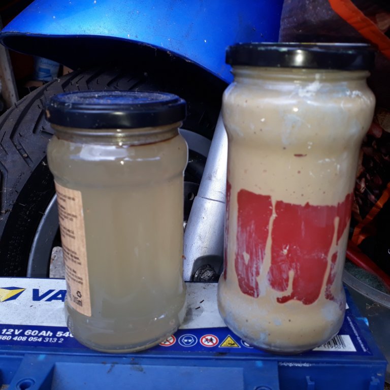 Wie find ich raus, ob das emulgierte, schmierige Zeug von Motor- oder Getriebeöl kommt? Das eine schwarzbraun, das andere rot...