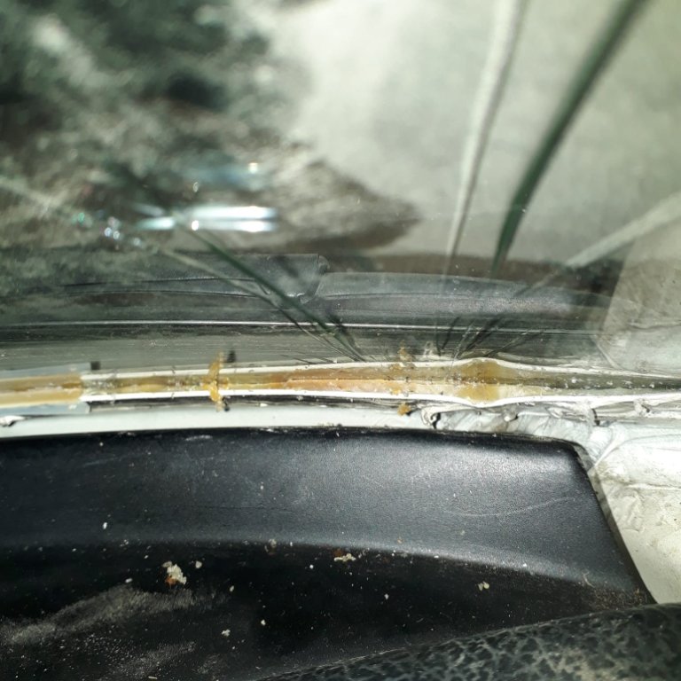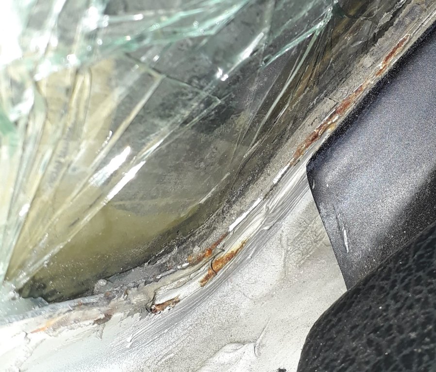 Bis zum Scheibentausch vor 3 Jahren gabs da keine Probleme, der Rahmen und Lack waren jungfräulich an der Stelle, der Scheibenmeister ganz angetan, weil noch nie sowas gesehen bei einem so alten Auto.