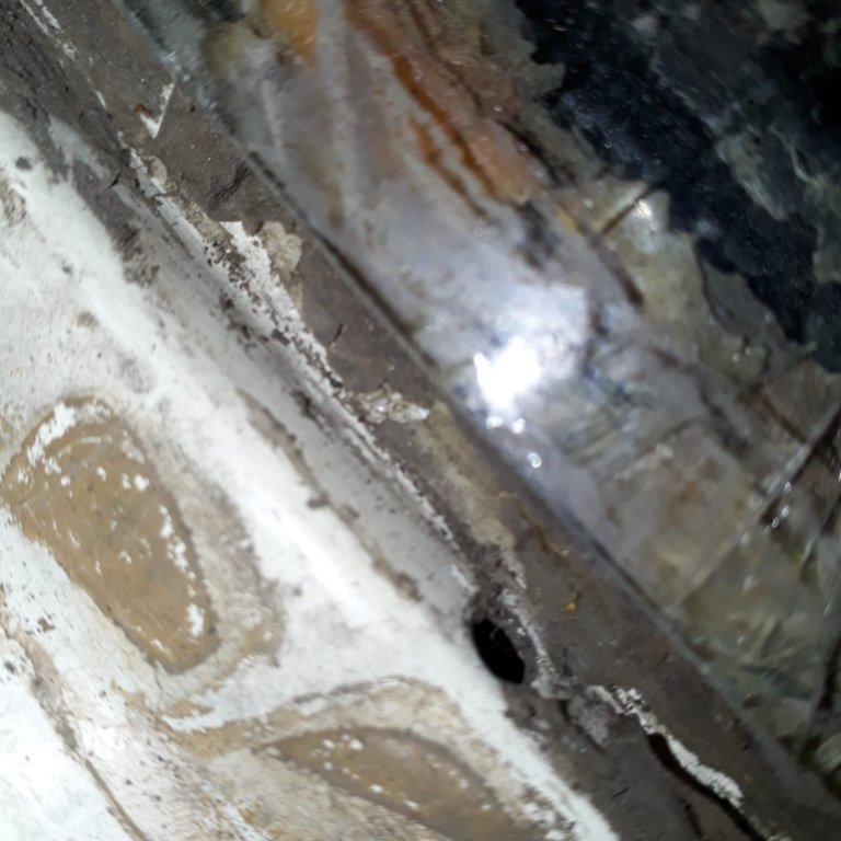 Ich hab keine Bedenken, daß die Scheibe am restlichen Rahmen nicht genug Halt findet, selbst wenn ich diese rostigen 10cm mit Olivenöl einstreiche und sie nicht mehr zur Klebekraft beitragen können.