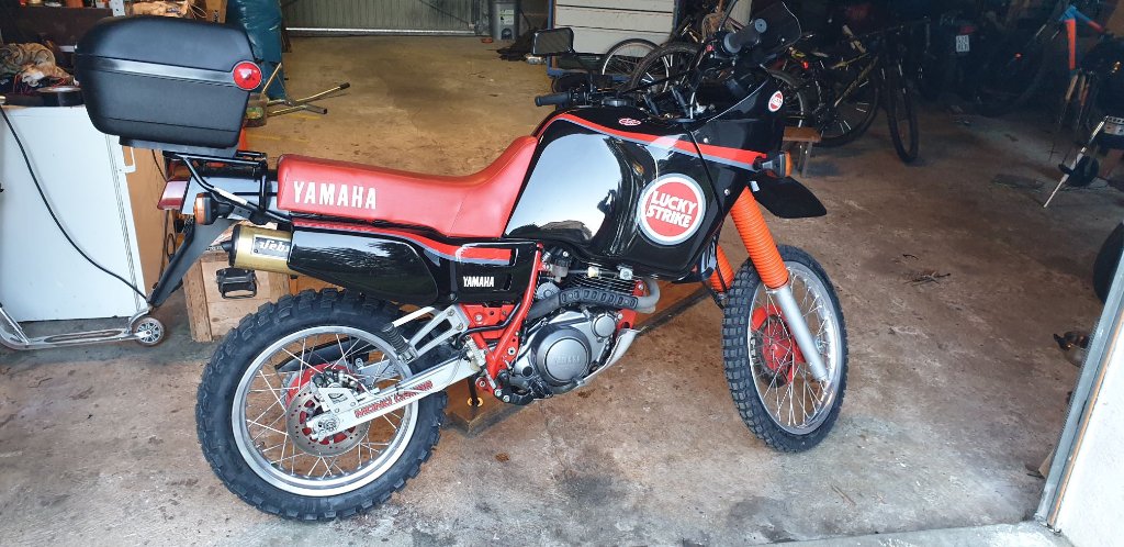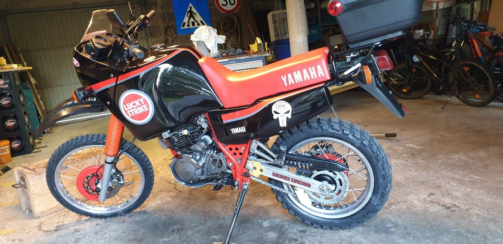 Gratuliere, das ist ja mal eine echte Schönheit. So eine Lackieruzng habe ich bisher bei einer Ténéré noch nie gesehen. Klasse - nur der Totenkopf ist nicht so passend.