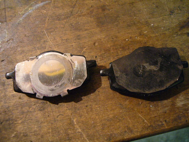 Wie gesagt beim Auseinanderbau kamen das Blech und die Platte zum Vorschein. Das Blech trägt ja noch ganz gut zu sehen den Abdruck des runden Bremszylinders, der sich am Bremssattel in FR rechts befindet.