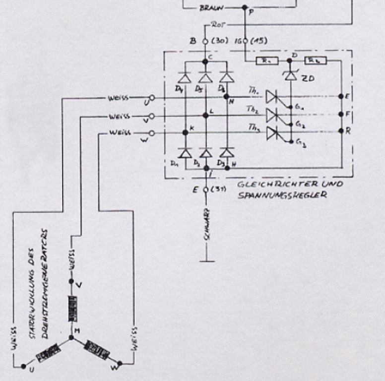 Zur Info,es handelt sich um eine 3 Phasen Drehstrom Lichtmaschine mit einem NICHT auf Masse gelegtem Sternpunkt!