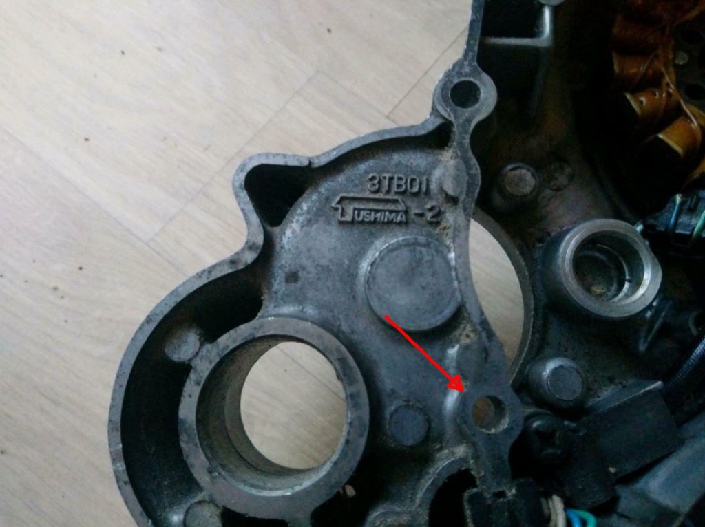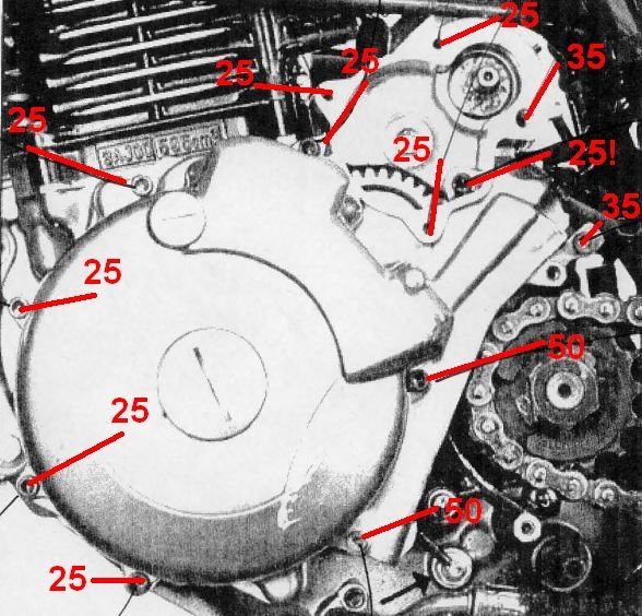 Anmerkung: da dieses Gewinde oft überstrapaziert wird, hier der Reparatur-Tipp: M6er Helicoil-Einsatz montieren (dazu Kupplungsdeckel zwingend abnehmen, da sonst Späne in den Ölkreislauf dringen (kein Sackloch!)