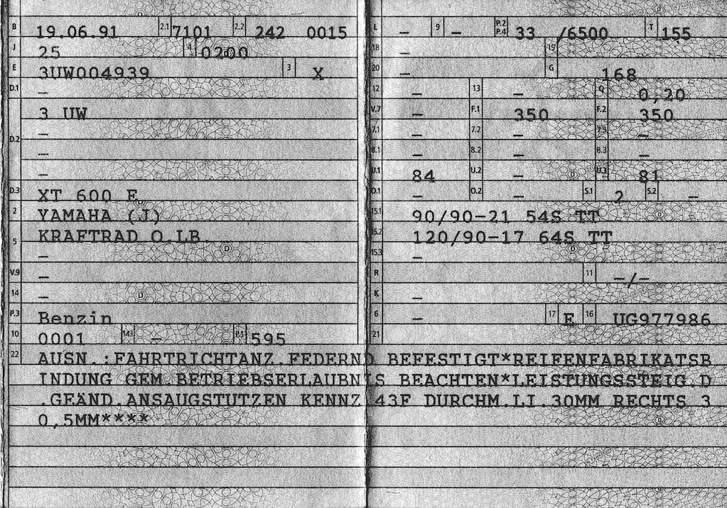 Das "E" steht in meinem Fall nicht für E-Starter, denn ich habe nur 'n Kicker.romani hat geschrieben: Vielleicht hat die XT von Ministreose E- und Kick-Starter und die von herr_dreier nur E-Starter?