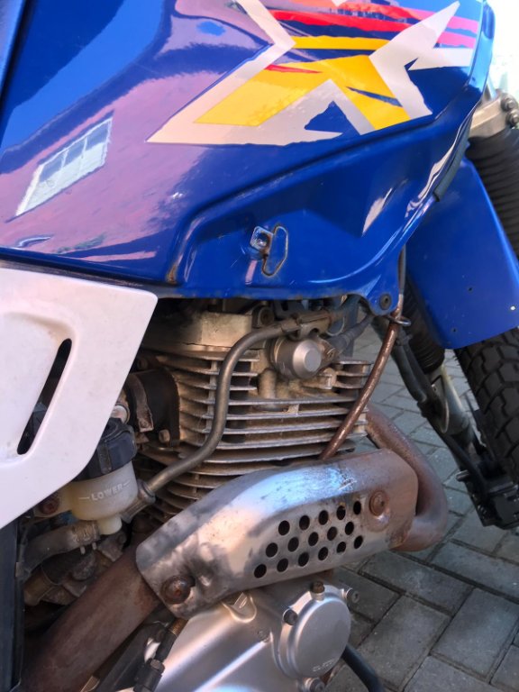 Es handelt sich um eine XT 600 aus 1997 mit knapp 35.000km. Vergaser wurde vor 2 Jahren vorm TÜV (ist also gerade abgelaufen) gereinigt. Ansonsten ist die letzten 2 Jahre kaum was passiert, vlt 400km Lt Besitzer. Gabel vorne leckt, Dämpfer leckt, Motor trocken (minimal am Zylinderfuss), Bremsleitung vorne etwas nass, 2 kleine Löcher in Sitzbank, chromfelgen ziemlich rostig, kein richtiger geradeauslauf vom lenker (vermute leichter Sturz, dürfte aber mit Gabelbrücke etc richten zu bereinigen sein) Rahmen, Lenker sehen gerade aus. Ein Tank spoiler fehlt, Batterie muss neu, Reifen Schläuche müssen neu, ölansammlung am Rahmendreieck (links) mmhh gute Frage wo das her kommt (Sturz? Unvorsichtig beim auffüllen?) Ölstand schwach, knapp unter Minimum.