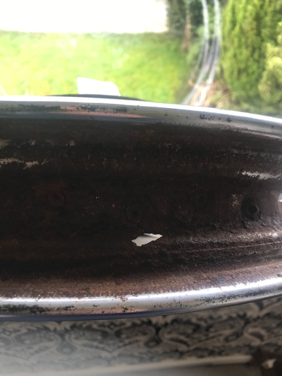 Nach 32 Jahren und 170tkm sind die Felgen meiner 3UW durchgerostet. Beim Wechsel auf Michelin Anakee rieselte etwas über 1kg Rost aus der Felge.Wohl zuviel Salzwasser im WInter. Und ein schönes Rostloch und ne abgerissene Speiche deuten darauf hin, das ersatz her muss.