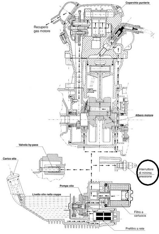 Blöd ist ja, daß der Öldruckschalter nach dem Ölfilter ist und damit jeder Span, der beim Gewindeschneiden ins Innere reinfällt, auch gleich durch den ganzen Motor marschiert! Siehe Bild vom Motor...